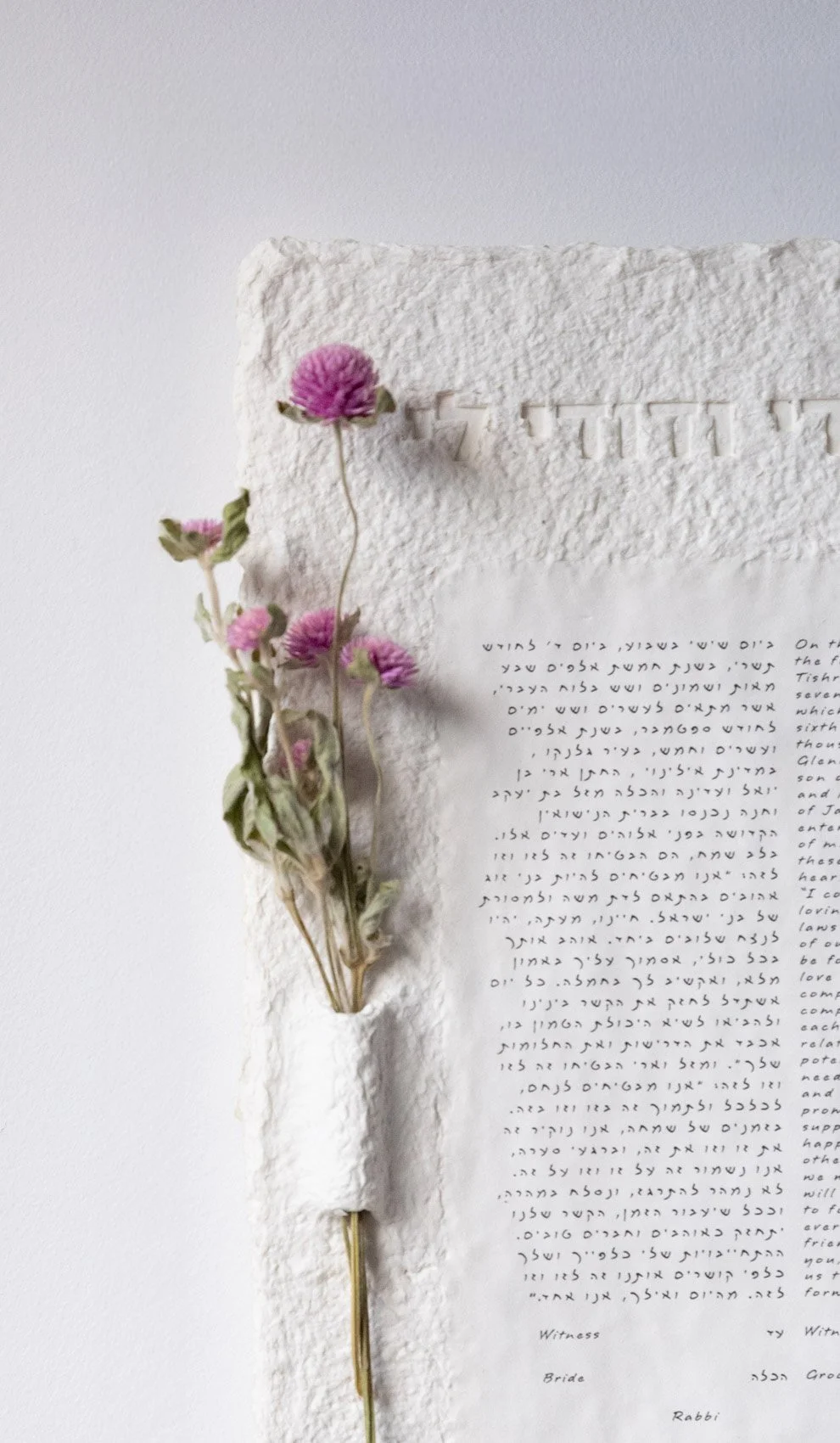 Bring your Ketubah to life with our dried botanical selection. Feel free to make a custom arrangement for a more diverse look. And yes, dried flowers are included in the price!